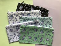 The pouches are handmade/sewn in my little studio with fabric I designed myself, so please allow for small imperfections.